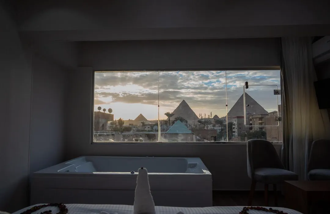 Las habitaciones del Tuya Pyramids Inn tienen una plancha y tabla de planchar, climatizador. Algunas también disponen de un balcón y un vestidor, además de un escritorio. Además de minibar y servicio de tetera/cafetera, estas con aire acondicionado habitaciones ofrecen Wi-Fi gratis y TV de pantalla plana con canales vía satélite para tu comodidad. Los huéspedes pueden utilizar bidé y también inodoro separado. Además, cuenta con gorro de ducha y toallas de baño.